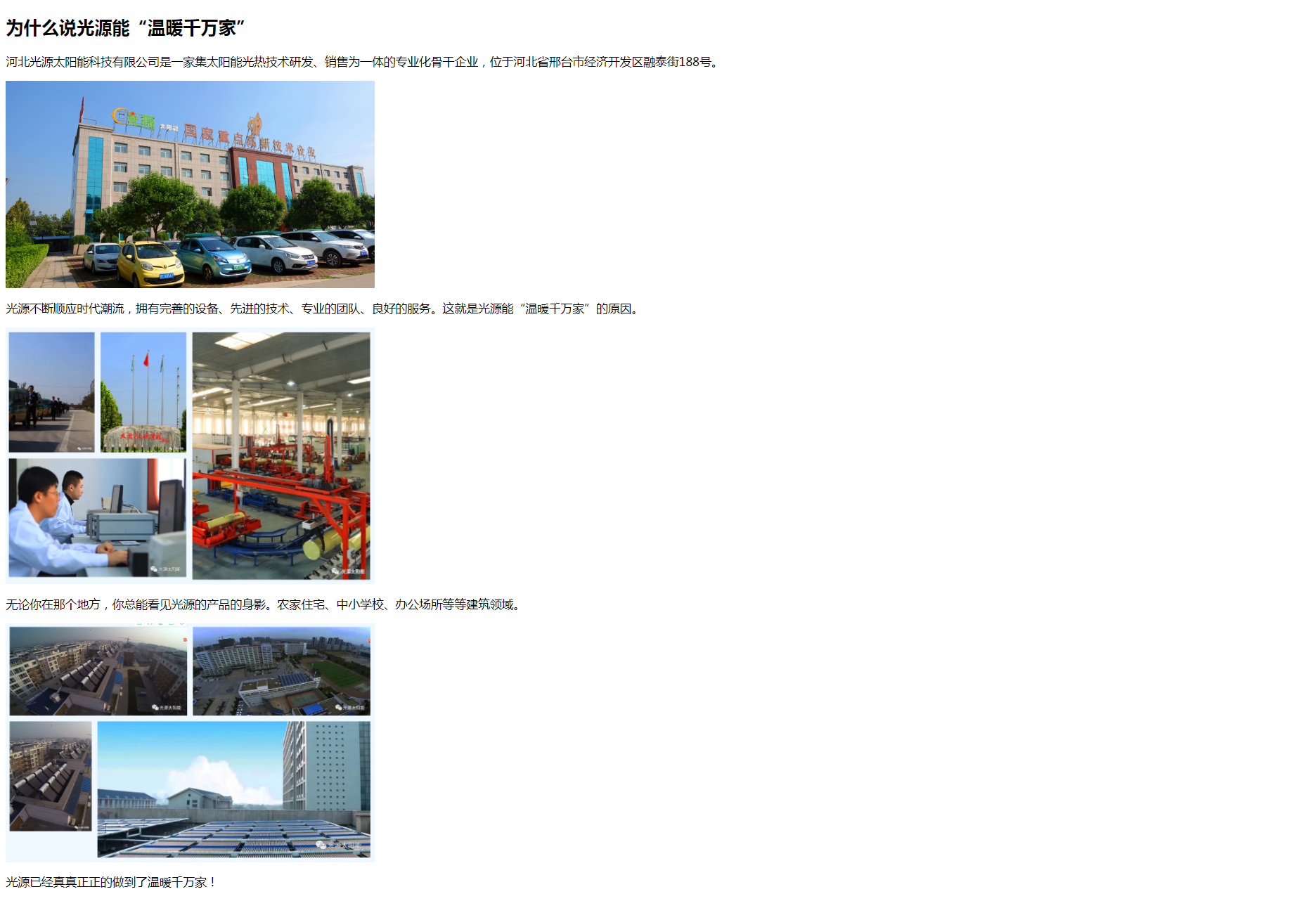 Copyright(C)2021 河北光源太陽能 E-mail: hbguangyuan@163.com 地址: 邢臺經濟開發(fā)區(qū)王快鎮(zhèn)北屋村永安路2199號 關于光源 | 公司動態(tài) | 聯系我們 | 法律聲明